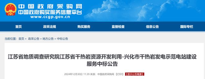公告显示,该项目由中国技术监督情报协会地热产业工作委员会常务委员单位——中国电建集团华东勘测设计研究院有限公司中标,中标金额为15351016.54元,该地热电站将于2025年8月30日前实现试验性发电。