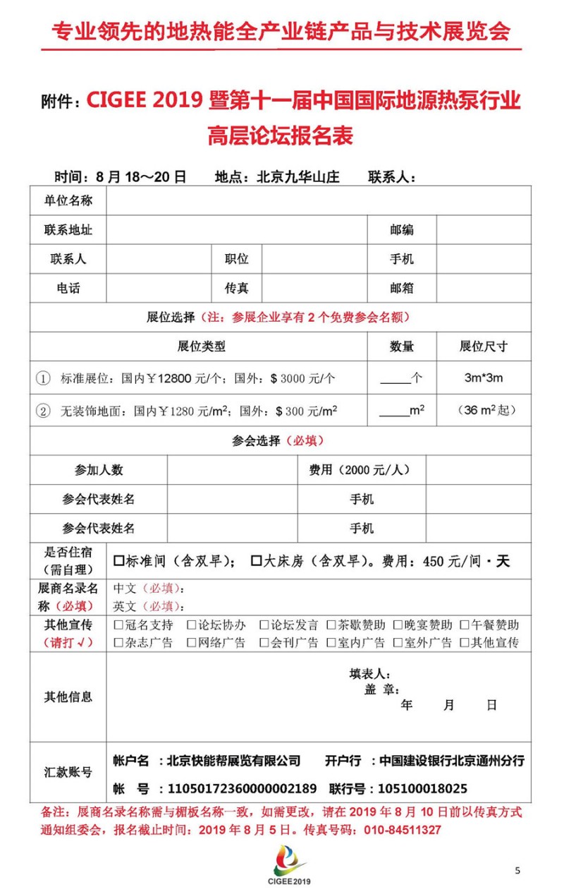 为贯彻落实习总书记关于推动能源生产和消费革命的战略思想,积极响应“十九大”全面推进绿色清洁能源发展号召,全力促进地热行业科学有序开发利用地热能资源,保障地热能的清洁开发和永续利用,推动我国地热能产业走向科学化、高端化、智能化。经研究决定,于2019年8月19-21日在北京举办2019第六届中国国际地热能技术与装备展览会(简称CIGEE2019中国地热展)暨华清荣益·第十一届中国国际地源热泵行业高层论坛,相关介绍如下: