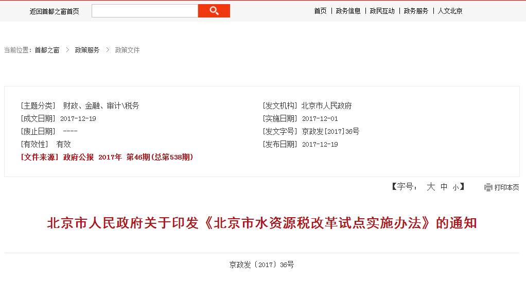 - 北京市实施水资源税改革试点,地源热泵取水从低收税