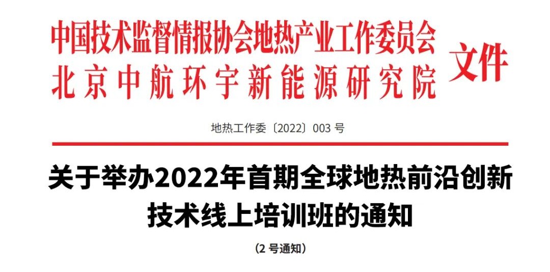 - 关于举办2022年首期全球地热前沿创新技术线上培训班的通知
