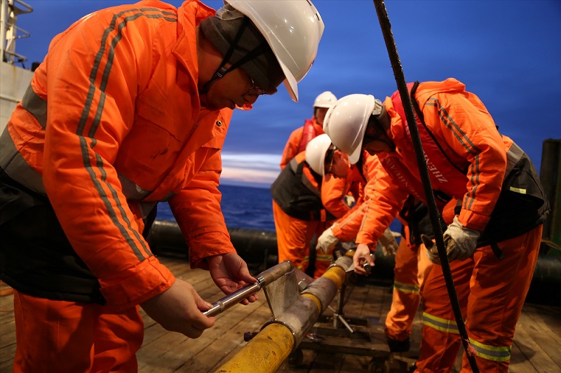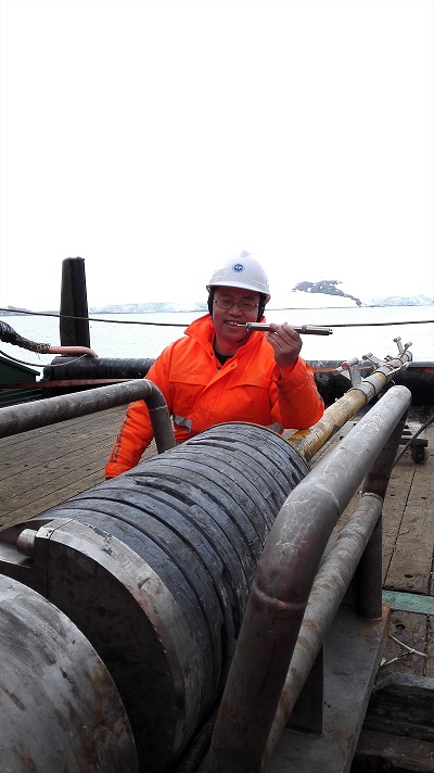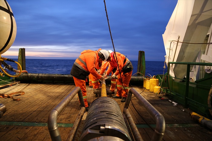 由于南极海底沉积物底质较硬,而地热测量需要将探针插入海底沉积物中。为了确保取得有效数据,“海洋六号”采取先完成重力取样,在采获较长的沉积物柱状样品情况下,再实施地热流测量的施工方案。