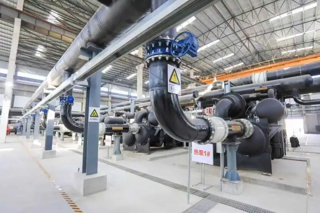 通过现场探访,该项目新建6台7兆瓦热泵机组及附属设备设施,采用“污水源热泵”与“热网回水加热”模式,将难以直接利用的污水源低品位热能转换为高品位热能,并入城市热力管网,替代传统的燃煤和燃气锅炉供热。每年供热量达54.4万吉焦,再生水利用量2160万立方米,减少二氧化碳排放量3万吨,开创了水资源循环利用加绿色能源供给的新模式。