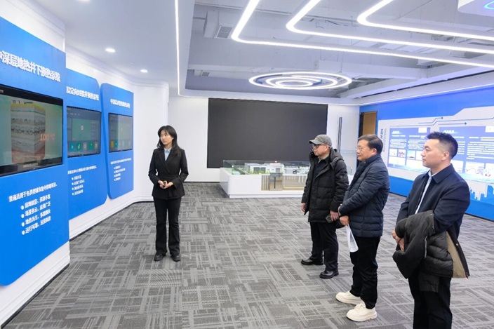 图为地热产业工作委领导参观万江新能北京分公司展厅