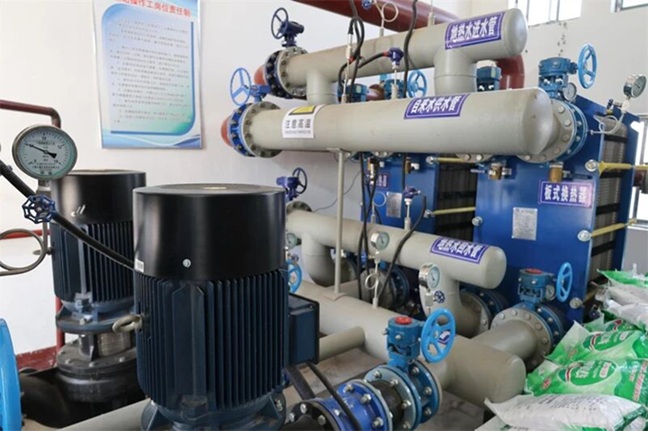 安驾庄镇地热能供暖项目采用“板式一次换热”工艺,地热水从热源井“起程”,被输送到清洁供暖换热站,过滤净化处理泥沙和杂质后,流向板式换热器,地热水的热量通过金属板片从高温侧传递到低温侧,实现流体间的热交换之后,失去热量的温泉水顺着回灌管道流向回灌井。此时,供热管网里的水温上升,居民家就暖和了。可实现供热面积10万平米,利用“取热不取水”的生态循环,大大降低了碳排放量。