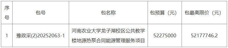 2、项目名称:河南农业大学龙子湖校区公共教学楼地源热泵合同能源管理服务项目