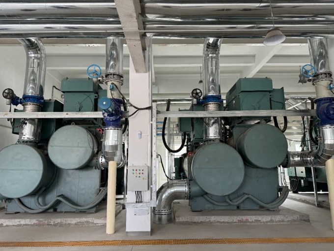 雁儿湾污水源热泵站与雁儿湾污水处理厂仅一墙之隔,在这里,城市生活污水经过初步处理后形成的中水,通过管道被输送至站内的5台大型热泵离心机组。