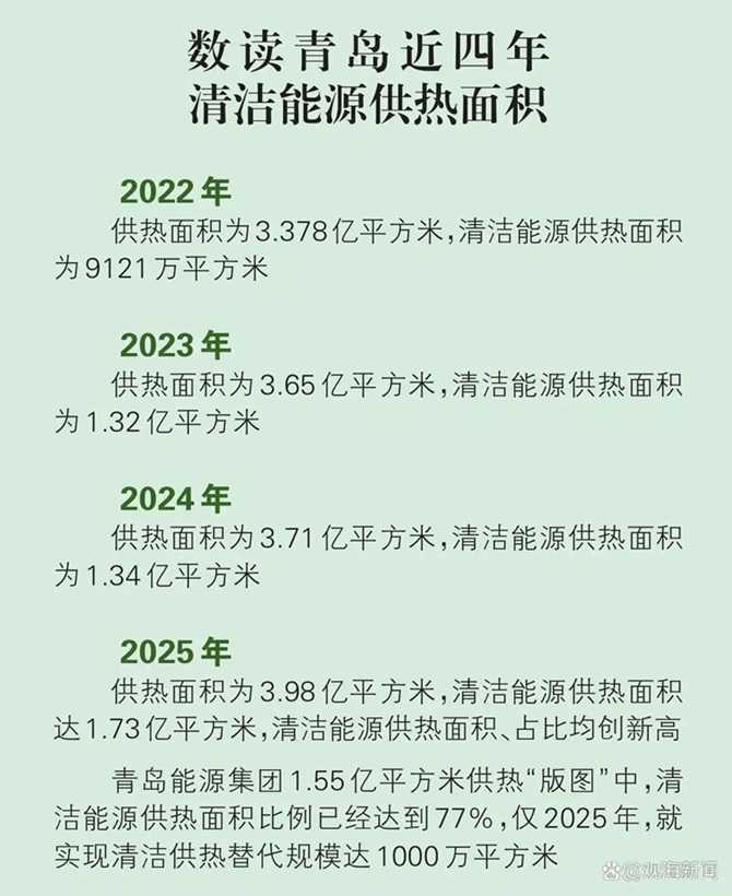 现在,在其1.55亿平方米供热“版图”中,清洁能源供热面积比例已经达到77%,仅2025年,就实现清洁供热替代规模达1000万平方米,城市绿色供热规模持续扩容增量。