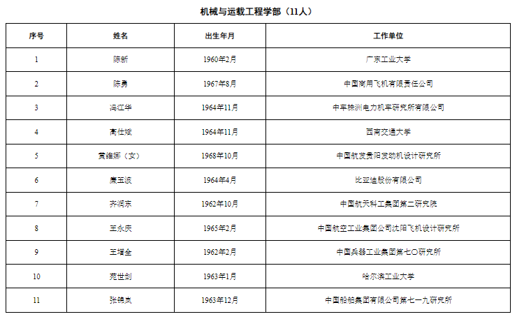 当选中国工程院院士的71人中,机械与运载工程学部11人,信息与电子工程学部9人,化工、冶金与材料工程学部10人,能源与矿业工程学部12人,土木、水利与建筑工程学部7人,环境与轻纺工程学部6人,农业学部8人,医药卫生学部8人。女性科学家有8人当选,还有一批国防和国家安全领域承担重大任务的专家、多位民营科技领军企业的专家、以及6位扎根西部边远地区的优秀专家当选。