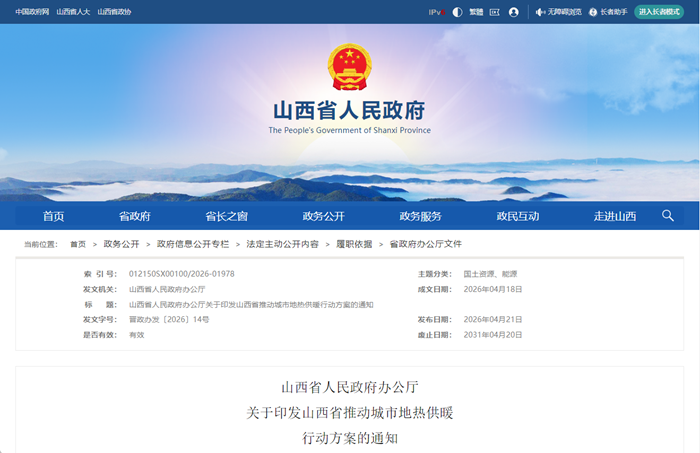 山西省推动城市地热供暖行动方案