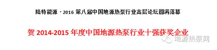 荣获2014-2015年度地源热泵系统集成十强企业