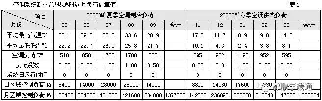 空调系统制冷/供热逐时逐月负荷估算值Q+