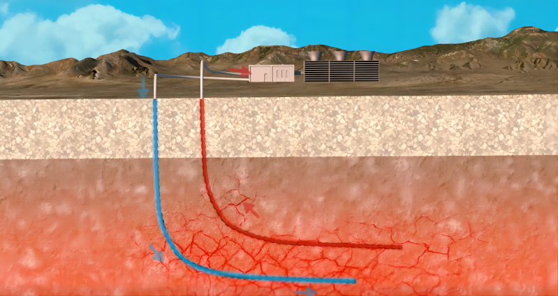 人类又该如何获取它呢?这主要分为以下几个步骤:一是从地表向干热岩中打一口“注入井”;二是封闭井孔,并向里面高压注入低温水;三是极高的水压迫使岩层出现裂缝,逐渐形成一个面状的热储构造;四是再从地表向下钻几个“生产井”,它们可以将蒸汽和高温水回收到地面;五是利用这些高温蒸汽就可以供暖或者发电,剩余的温水会通过注入井返回到干热岩中,从而实现能源的循环利用。