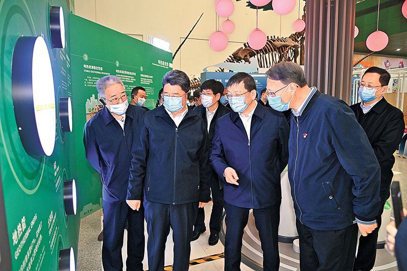 中国石化新闻网讯 记者赵士振报道:11月9日,国家能源局党组书记、局长章建华在集团公司党组书记、董事长马永生陪同下,在中国科学技术馆参观由中国科协和中国石化共同主办的地热科普公益展。