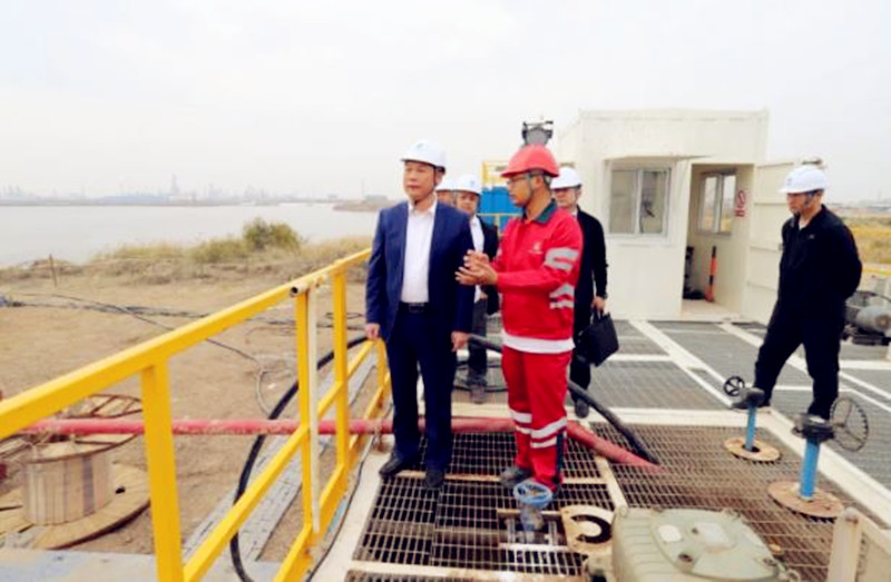 在项目现场,张云峰一行登上钻机作业平台,详细了解钻机性能指标和项目钻探进度,实地察看安全生产措施落实情况。随后,张云峰到项目部工作和生活区,检查标准化项目部建设情况,听取项目负责人工作汇报,与一线职工座谈交流,了解项目党建、安全、技术质量管理以及日常生活保障等方面情况。