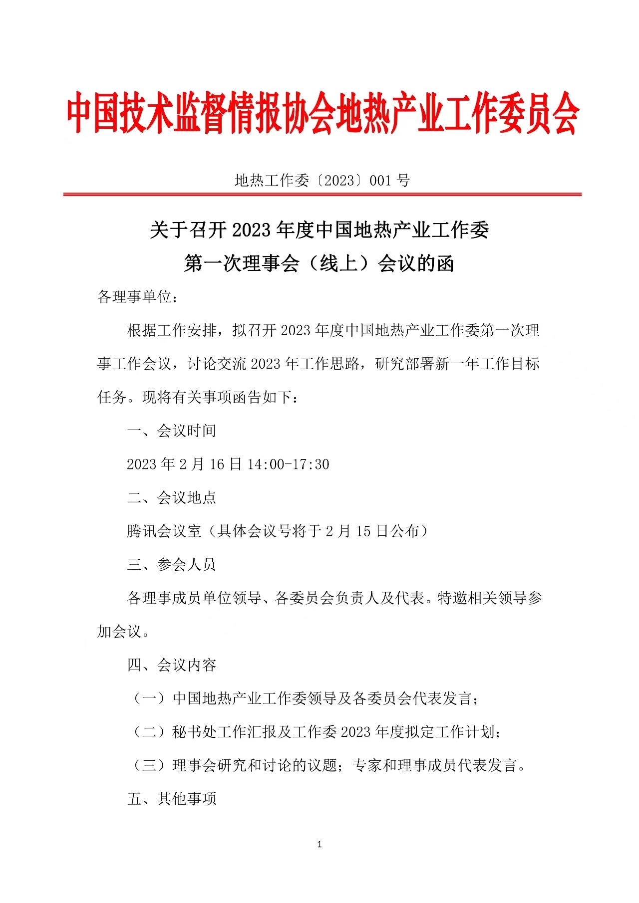 关于召开2023年度中国地热产业工作委第一次理事会(线上)会议的函