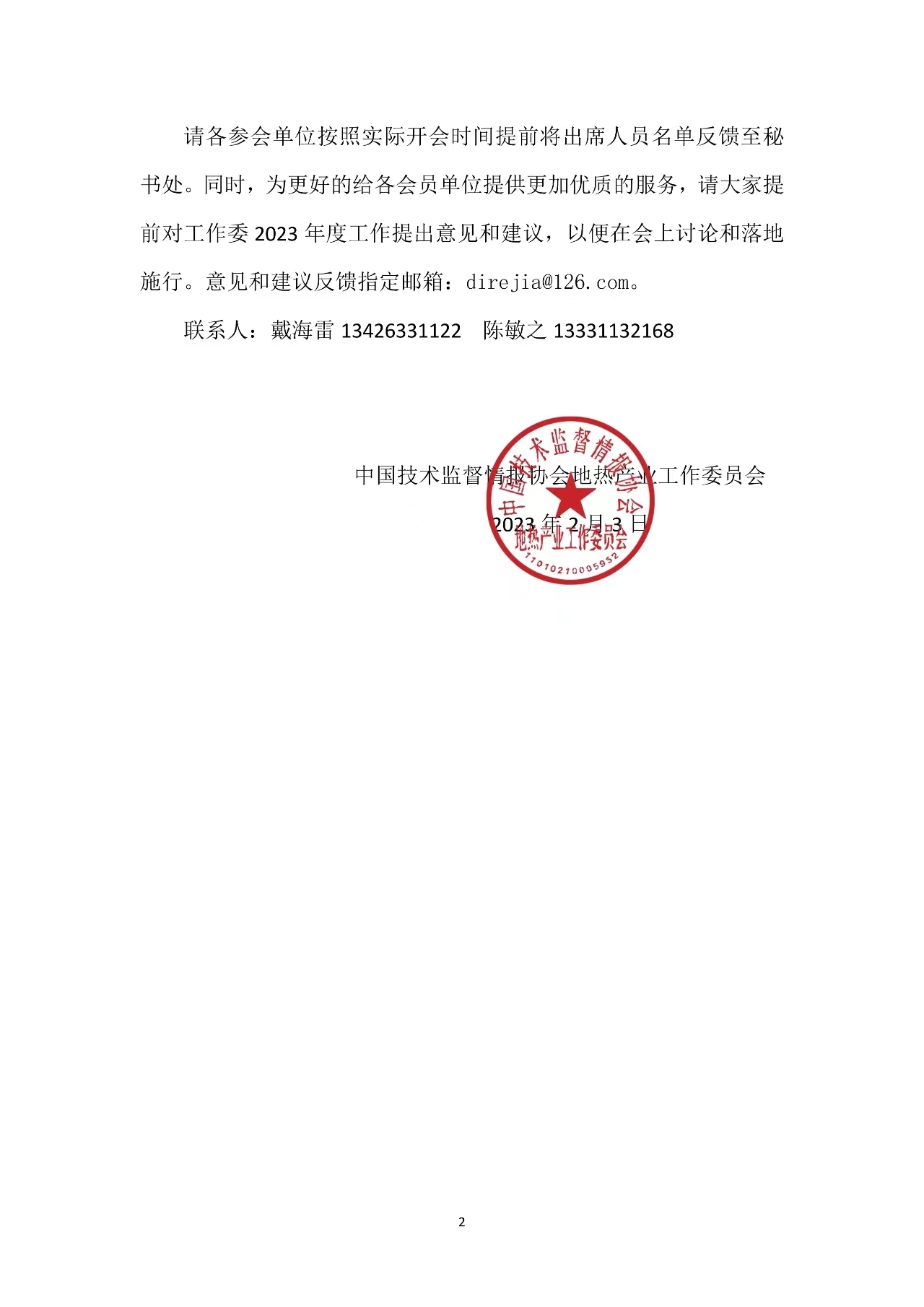 根据工作安排,拟召开2023年度中国地热产业工作委第一次理事工作会议,讨论交流2023年工作思路,研究部署新一年工作目标任务。现将有关事项函告如下: