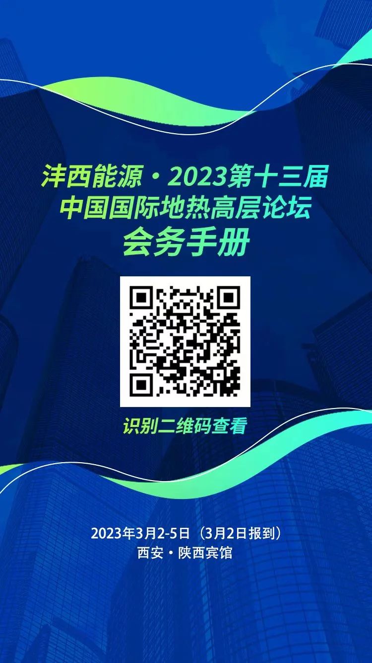 沣西能源-2023第十三届地热高层论坛会务手册发布,请用微信扫码识别阅读和收藏,欢迎赴西安参加大会和观看第八届中国地热能展!