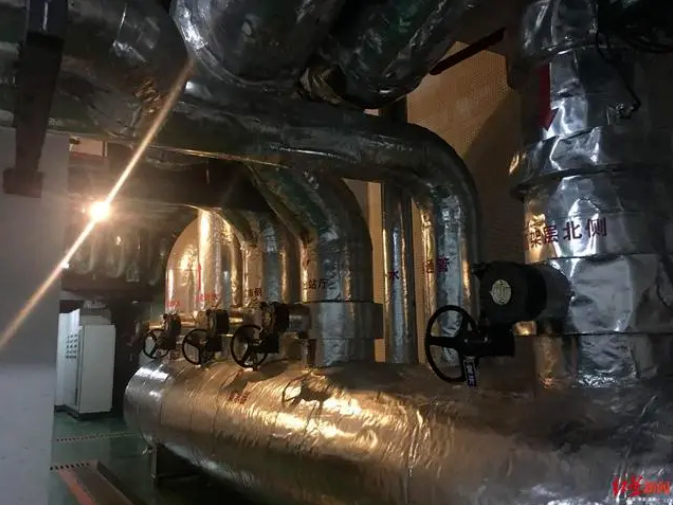 成都东客站地源热泵主机房,主机循环调节可实现夏天制冷冬天制热。