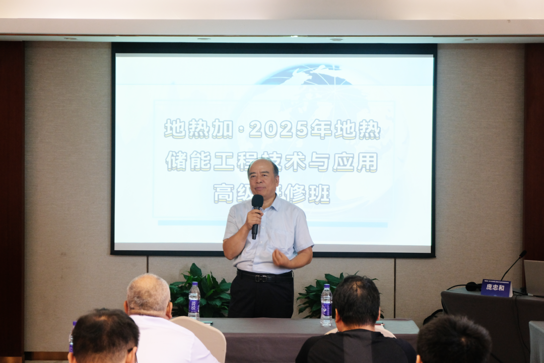 致辞结束后,庞忠和研究员为高研班带来了首场专题讲座。在三个小时的课程中,他系统阐释了地热系统动力学的基本原理与实际应用,深入剖析了中深层热储工程的关键技术,并全面介绍了地热储能工程的主要类型、面临的技术挑战以及雄安新区示范项目的实践经验。