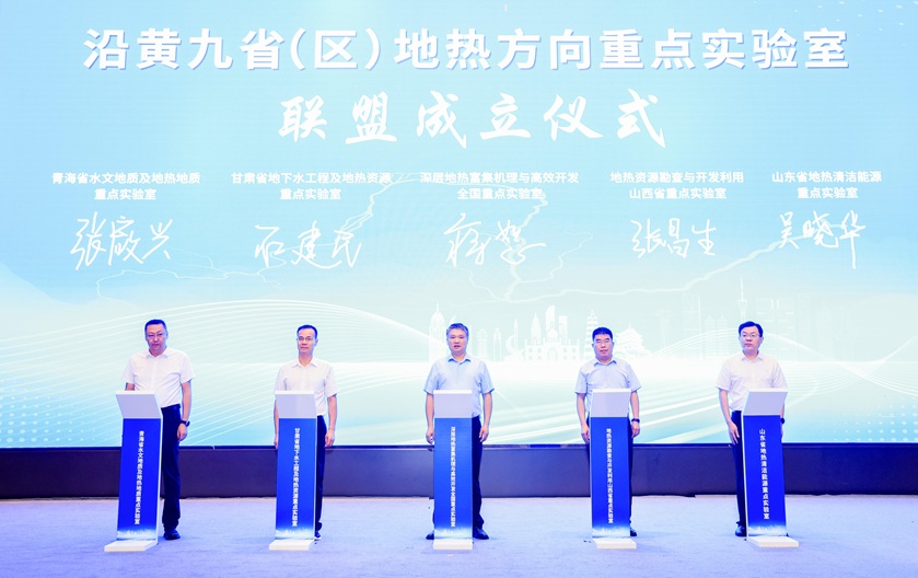 8月24日,沿黄九省(区)地质工作服务黄河流域生态保护和高质量发展科技创新成果交流会在济南召开。会上,“山东省地热清洁能源重点实验室”揭牌,向中国科学院院士、中国地质大学(武汉)教授王焰新颁发“山东省地热清洁能源重点实验室学术委员会主任”聘书;由深层地热富集机理与高效开发全国重点实验室和青海、甘肃、山西、山东四省地热重点实验室共同发起成立的“沿黄省(区)地热方向重点实验室联盟”签署合作协议。