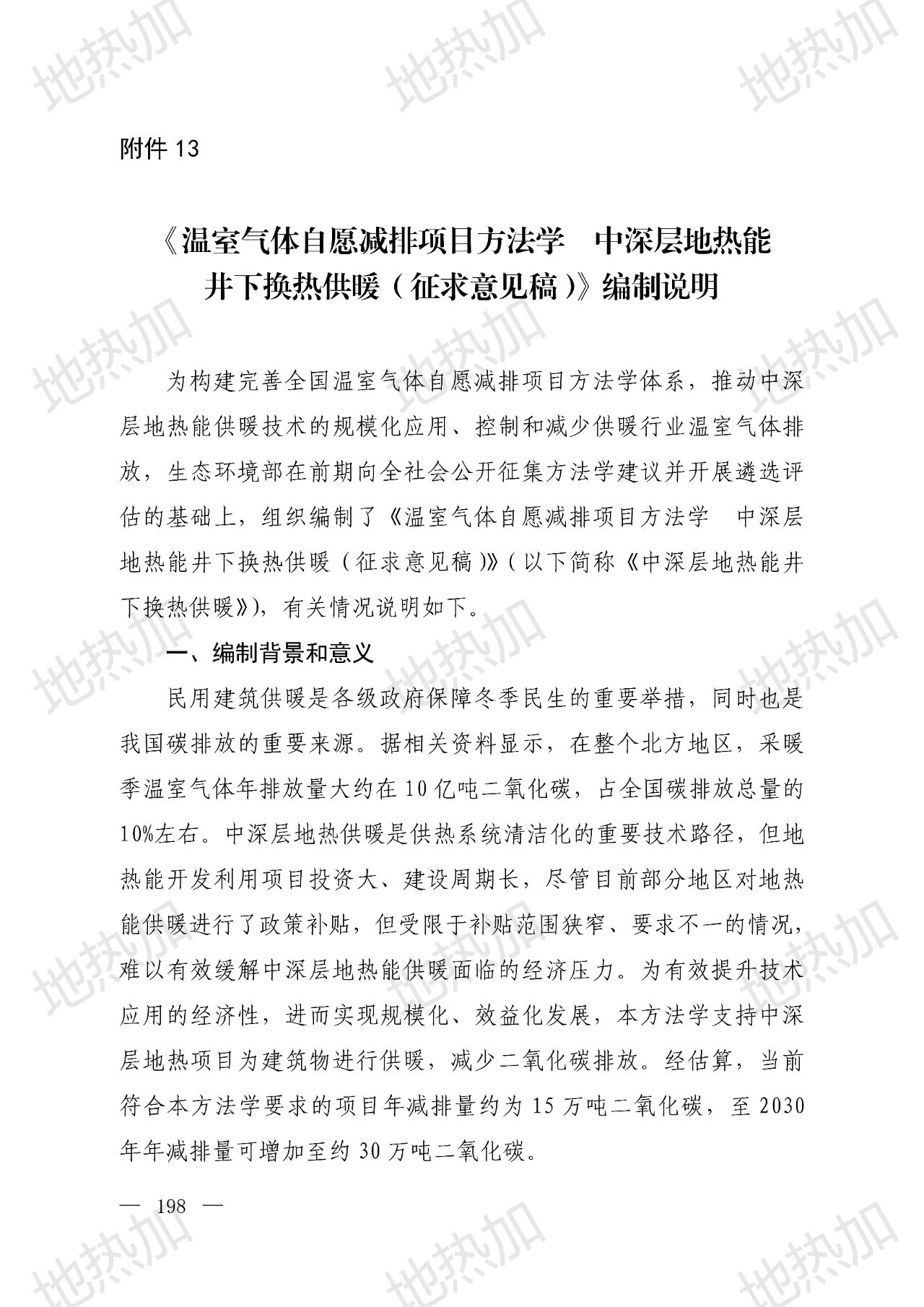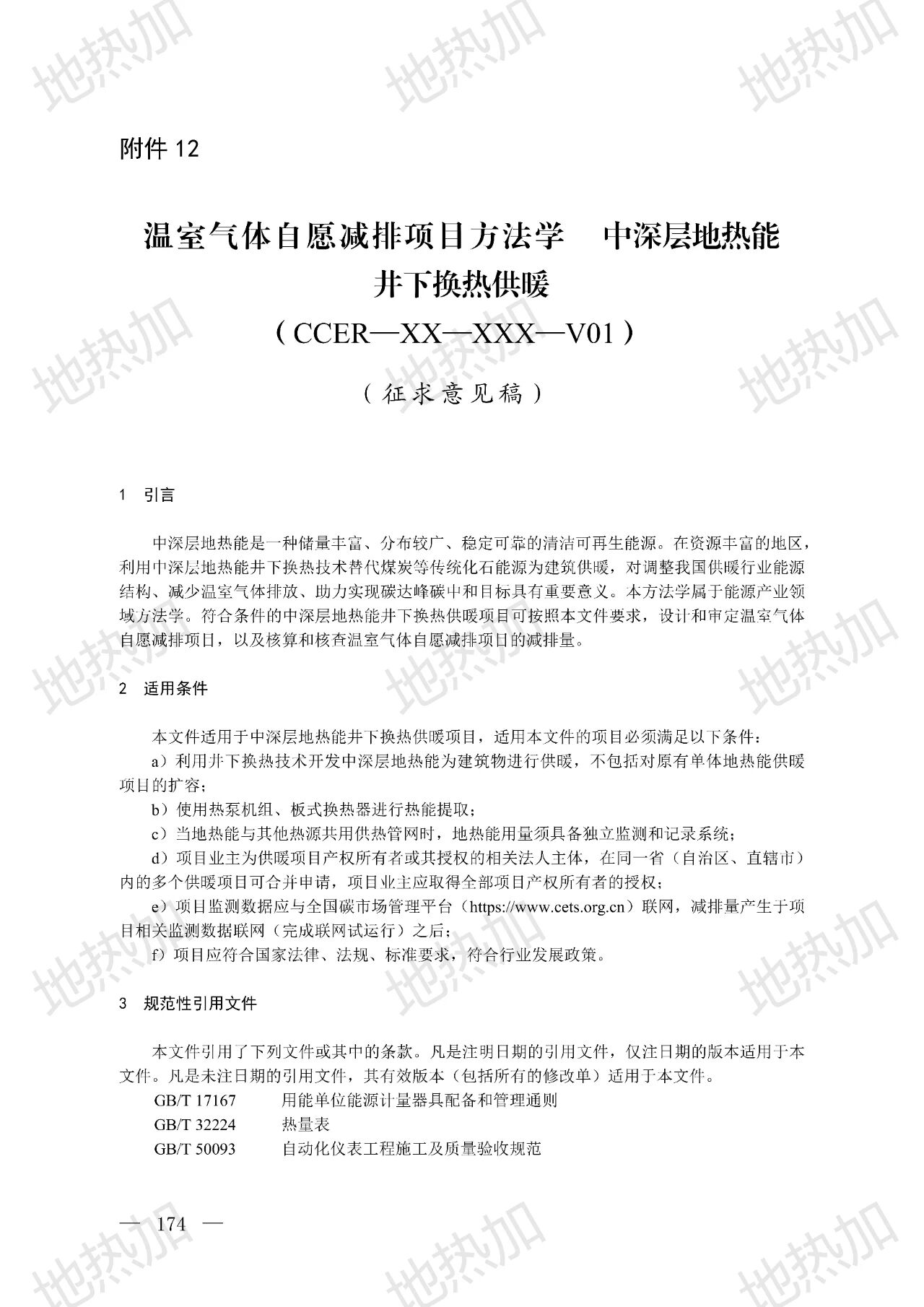 12.温室气体自愿减排项目方法学 中深层地热能井下换热供暖(征求意见稿)(全文详见后图文)