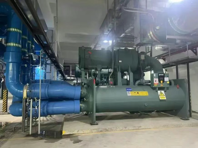 分布式光伏+再生水源热泵系统:项目综合利用产区屋顶平面与建筑立面光伏技术,分布式光伏总容量达804kWp,绿电“自发自用”,配置5台再生水源热泵机组,将热网循环水温度提升8-10摄氏度并入热网,供热能力近40MW,综合制热能效比可达4.2以上,达到国家一级能效最高标准,系统能效与经济性显著。