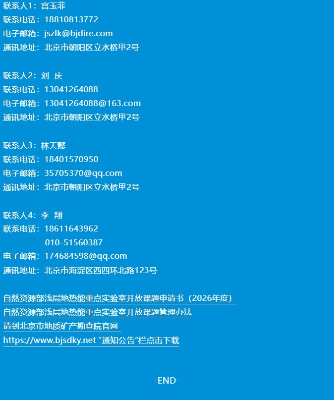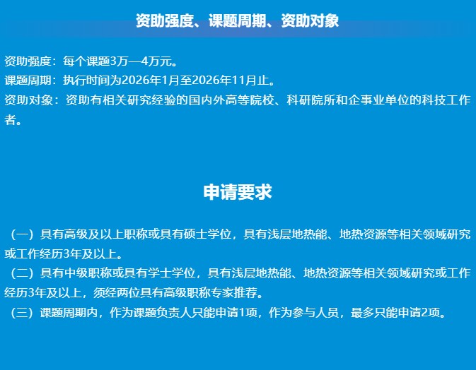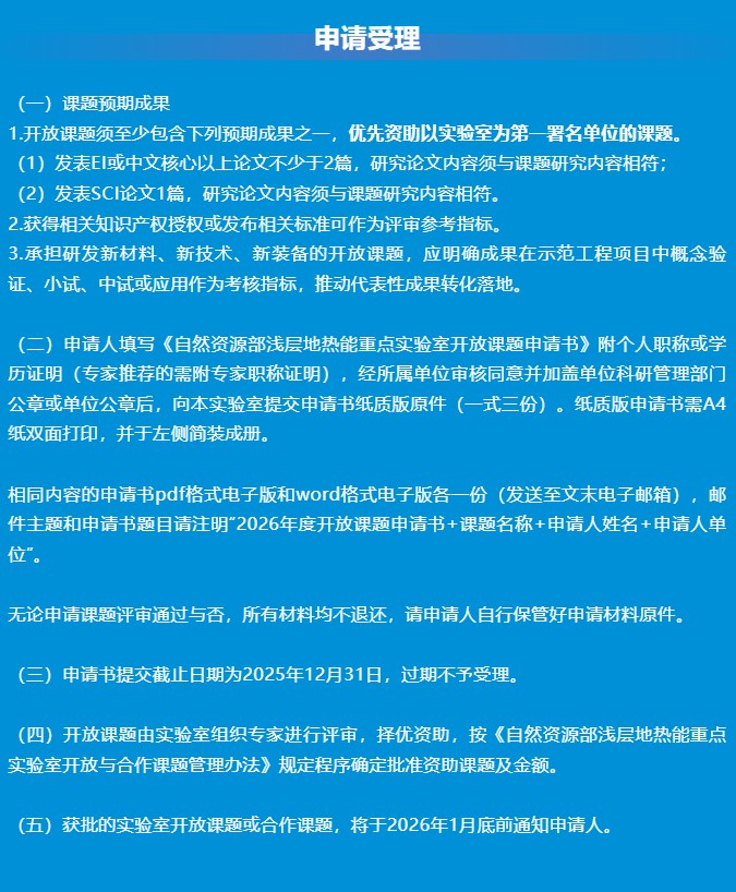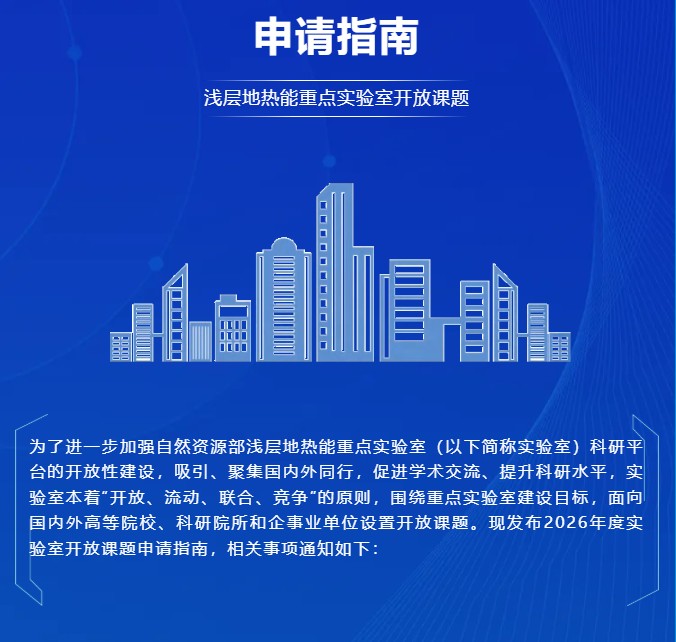 申请指南!自然资源部浅层地热能重点实验室开放课题(2026年度)