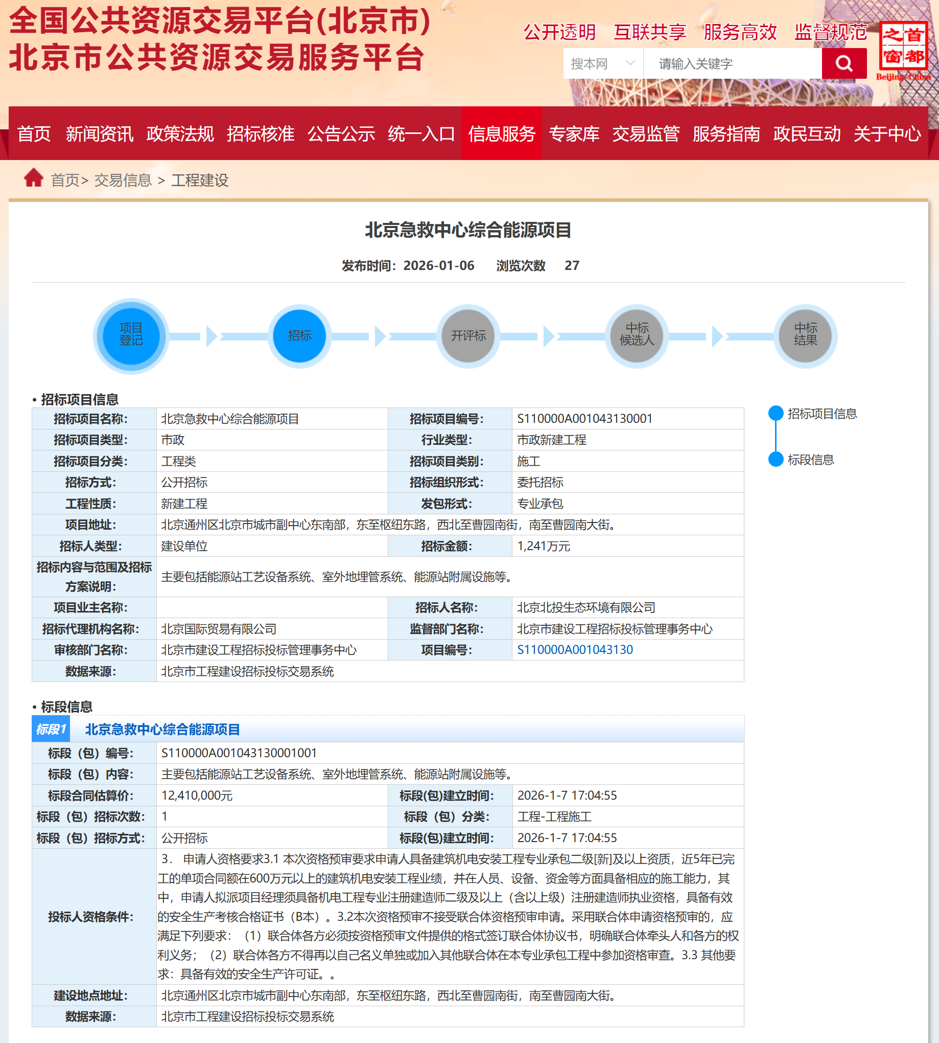 项目名称: 北京市通州区玉桥家园可再生能源耦合系统供能项目施工总承包