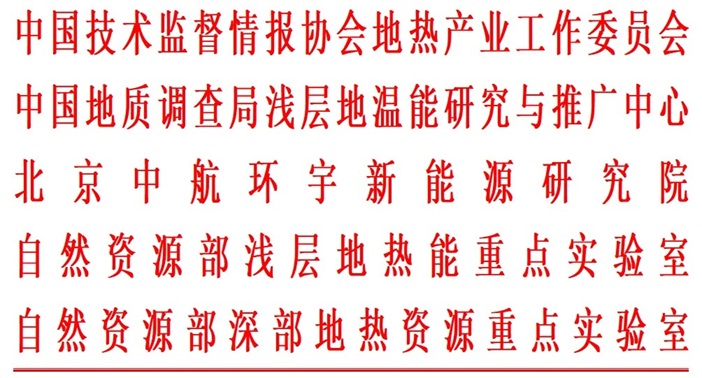 中国能源研究会地热专业委员会、中国矿业联合会地热开发管理专业委员会、中国地球物理学会地热专业委员会、中国地质学会地热专业委员会、中国可再生能源学会地热能专委会、国际地源热泵协会中国分会、河南省清洁能源供热协会、沈阳市地源热泵协会、吉林大学碳中和研究院、北京市新能源与可再生能源协会、山东省暖通空调专业委员会、湖北省暨武汉市土木建筑学会地源热泵专业委员会、武汉制冷学会、江苏省制冷学会热泵空调专业委员会、江苏省地热能源学会、河南省暖通空调冷冻节能协会、安徽省地质学会地热专业委员会、西藏地热产业协会、河北省地热产业协会、陕西省地热协会等。